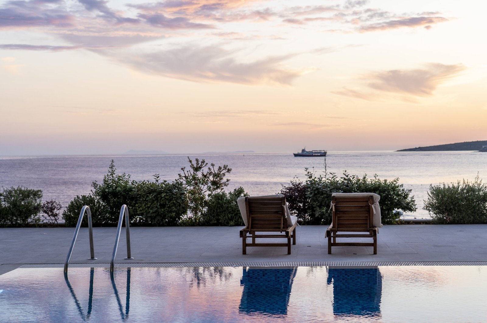 The expansive terrace of Asterion provides the perfect setting to enjoy captivating sunset views. As the sun sets, painting the horizon with vibrant hues, the panorama from Asterion is truly mesmerizing.
